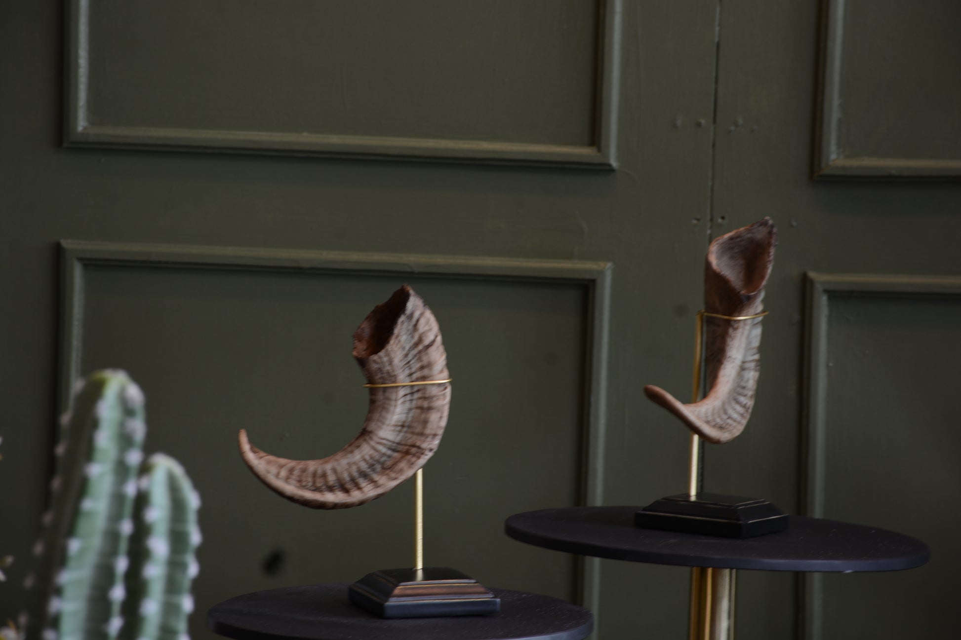 ESTA ESCULTURA DECORATIVA ES UNA PIEZA ÚNICA, FABRICADA EN RESINA DE ALTA CALIDAD Y SIMULANDO UN CUERNO DE TORO. VIENE CON UN SOPORTE QUE LE BRINDA ESTABILIDAD Y LA POSIBILIDAD DE SER EXHIBIDA COMO UN OBJETO DE ARTE EN CUALQUIER LUGAR DE SU HOGAR. SIN DUDA, UNA ADQUISICIÓN QUE APORTARÁ ELEGANCIA Y ORIGINALIDAD A SU ESPACIO.